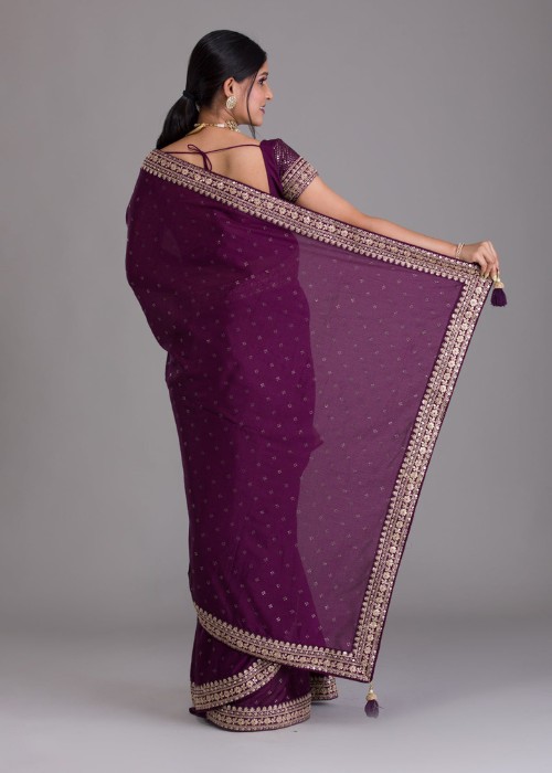 Get ready to dazzle in this Wine Sequin Border Chiffon Designer Saree! This exquisite saree is crafted with the finest chiffon fabric, ensuring a lightweight and comfortable fit. The stunning teal color adds a touch of elegance, while the sequin border adds a glamorous sparkle. Perfect for weddings, parties, or any special occasion, this saree will make you the center of attention wherever you go. Pair it with your favorite accessories and get ready to turn heads with your impeccable style.